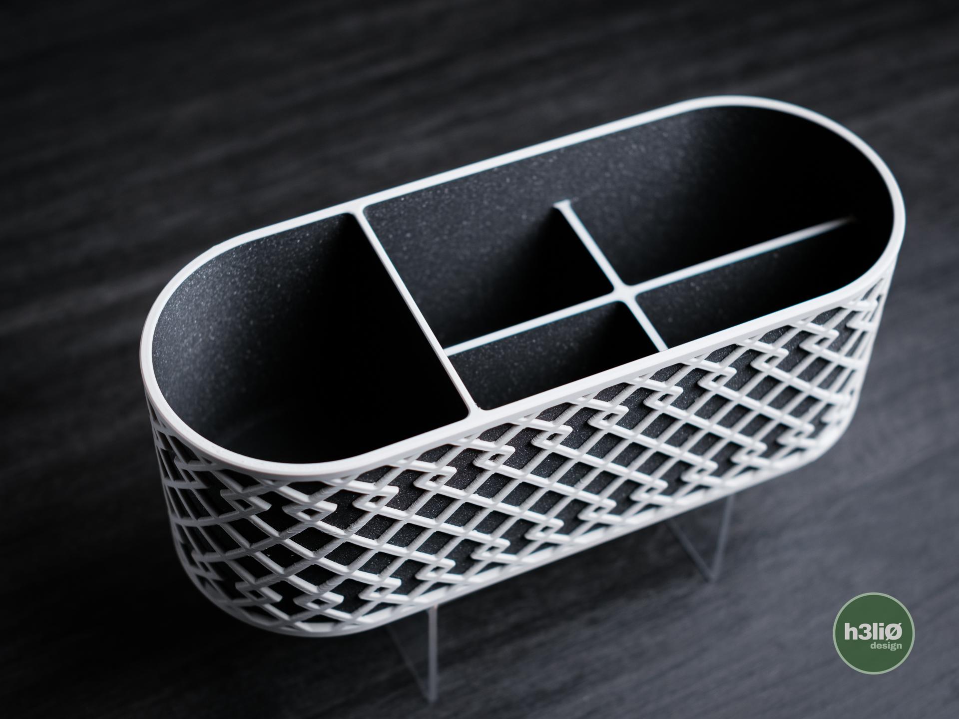 Der Axora Organizer ist ein moderner Organizer mit klarer Linienführung und dekorativer Struktur, der für Ordnung und Übersicht auf dem Schreibtisch, im Regal oder im Homeoffice sorgt. Durch die längliche Form eignet er sich ideal zur Aufbewahrung von Stiften, Kabeln, Zubehör, Werkzeug oder anderen Alltagsgegenständen.