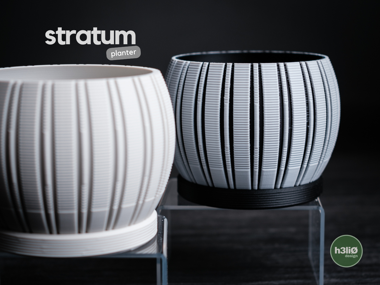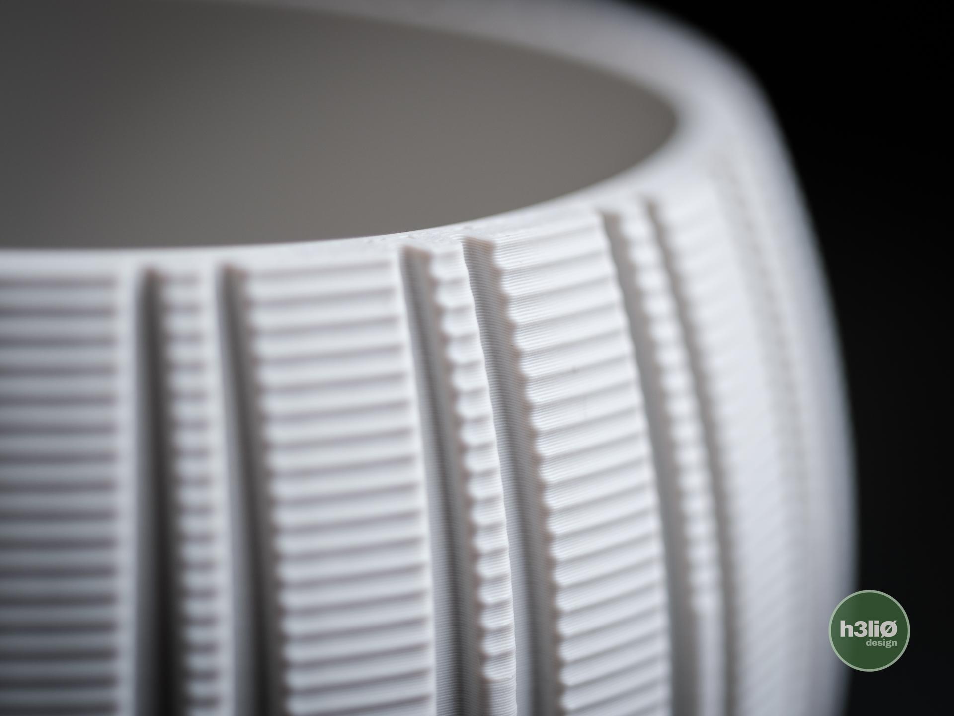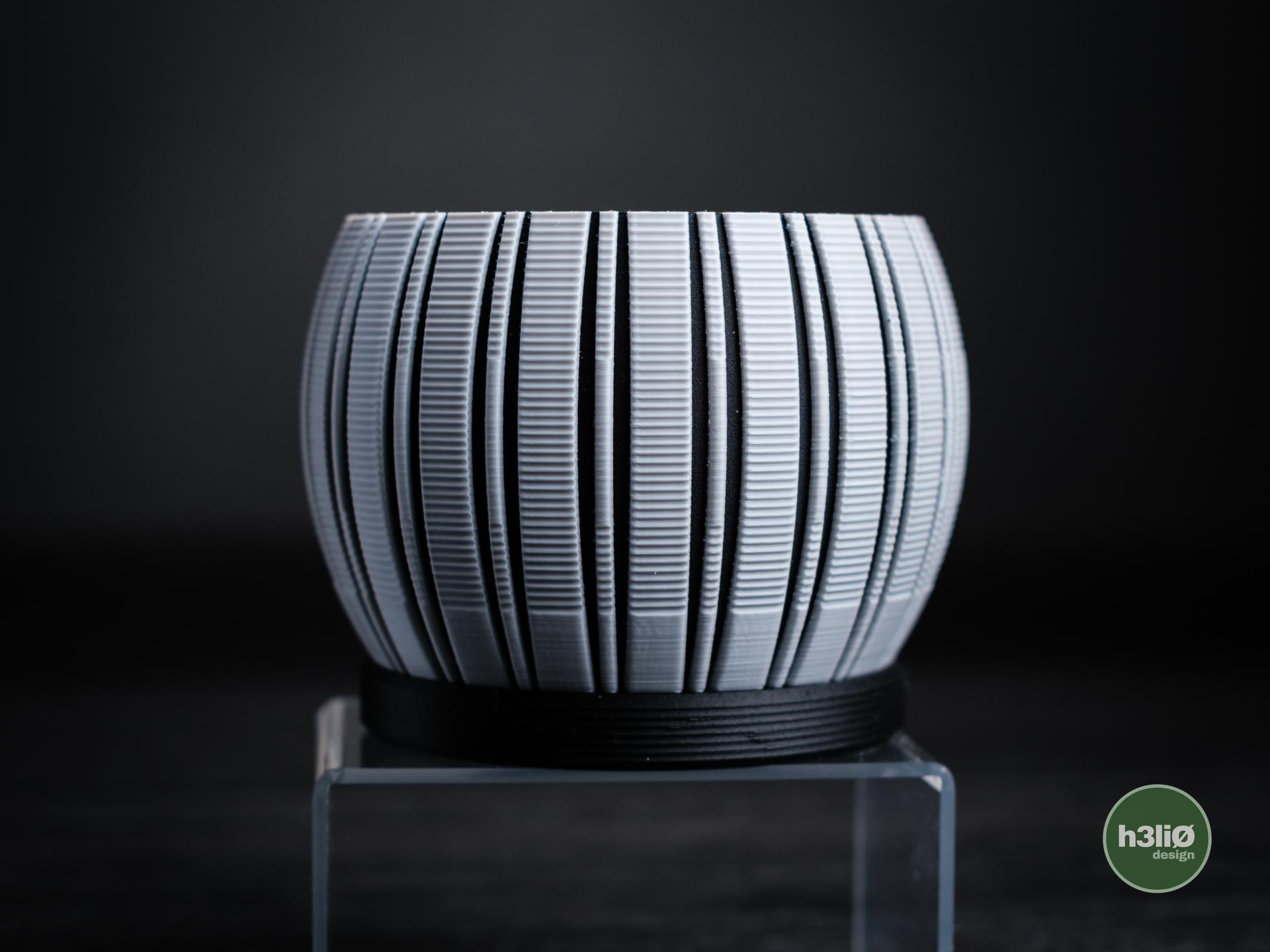 Gefertigt im präzisen 3D-Druckverfahren überzeugt der Stratum durch saubere Linien, gleichmäßige Strukturen und eine langlebige Qualität – ein Produkt, das Design und Funktion auf Premium-Niveau verbindet.