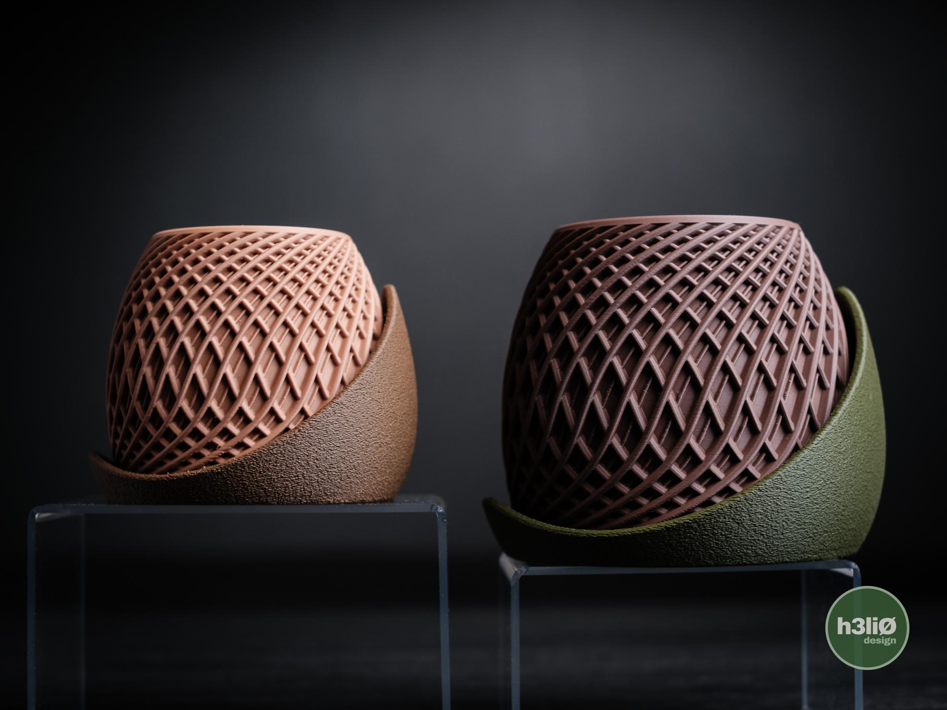 - Material: Hochwertiger PLA-Kunststoff (biologisch basierter Kunststoff auf Maisstärke-Basis). Bei wasserführenden Gefäßen (z. B. Vasen) erfolgt eine zusätzliche Innenversiegelung mit Epoxidharz.